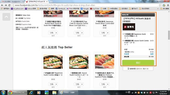 選好美食及決定好數量後,在右方訂單欄位就會出現該次訂餐的總金額,確認後就按下「預訂」。