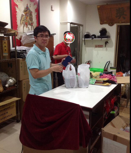預訂時間一到,身著紅色制服的foodpanda服務人員就準時將美食送到家。我們這次預訂是晚上七點,外送人員還提早十分鐘到,滿準時的呢!